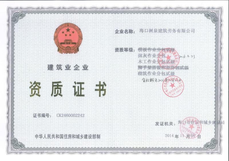 海口樹泉建筑勞務(wù)有限公司成立于2011年,公司位于海口,其前身是一家專業(yè)建筑施工隊,自2004年即開始在海南從事建筑勞務(wù)施工。自成立至今,公司已經(jīng)擁有一支科學(xué)管理、質(zhì)量過硬、能打硬仗,搶工期的專業(yè)隊伍。能獨立承擔(dān)大中型工業(yè)與民用建筑 、室內(nèi)外裝修、各類機電設(shè)備安裝工程。代表工程有海口濱海華庭、三亞時代海岸T01/02/04/05棟高層、合肥東海花園二期、陵水富力灣B區(qū)高層、三亞金中海(酒店)、瓊海大印經(jīng)典花園、海口環(huán)球海景大酒店(四星級酒店,在建中)、陵水珍珠大廈(五星酒店)、海口萬達廣場、美蘭機場二期。